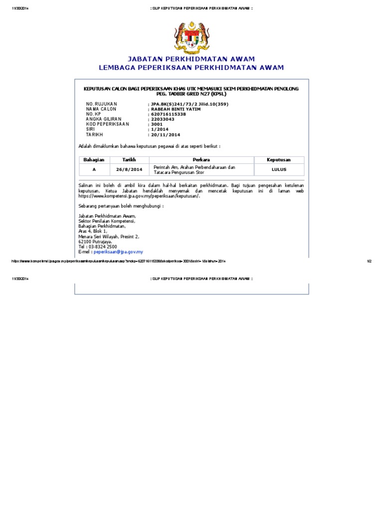 Slip Keputusan Peperiksaan Perkhidmatan Awam Pdf Pdf